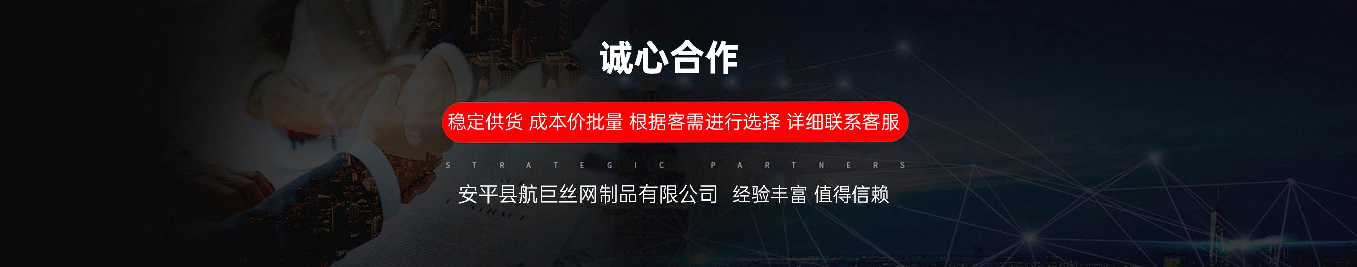 安平縣航巨絲網制品有限公司位于富有“絲網之鄉”美譽的—河北安平縣,此地是世界上最大的絲網集散基地,是華北平原上一顆璀璨的明珠。地處京、津、石三大城市中間,交通便利,是一家集生產,加工,銷售為一體的大型絲網廠家。本廠專業生產各種類型的絲網,類型齊全,主要包括:格賓石籠網,雷諾護墊,麥克排水墊,加筋麥克墊,市政護欄,防爆籠,主動防護網,被動防護網,電焊網片,鋼格柵板等產品,形成了針對邊坡支護、基坑支護、山體邊坡綠化、鐵路、高速、公路、江河、堤壩及海塘的防沖刷保護以及水庫、河流截流等不同行業、不同規模、不同應用的絲網產品和針對性解決方案,是國內最有影響力的絲網產品供應商。技術指標達到國家同類產品標準,可以接受較大的定單并保證質量和生產期限?! 」臼冀K堅持誠信為本、質量第一、客戶至上的經營理念,本著互惠互利的精神,希望與國內外朋友共同合作,為您提供優質的產品和服務。我公司在創新管理中求發展、創新經營中求生存。把企業標準化管理、定額管理、計劃管理,公司十分注重把握市場經濟的信息脈絡,用現代網絡技術,以科研開發為原動力,與科技院校及相關專家密切合作,共同研制開發21世紀適用顧客需求的相關產品?! “财娇h航巨絲網制品一直是以“質量精良,交貨及時,價格合理,服務周到”的宗旨來為廣大客戶服務;并且本著“質...